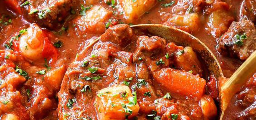 Hungarian Goulash is a flavorful beef stew that is ideal for chilly days. For this dish, you’ll require beef chuck or stewing beef, onions and garlic diced, sweet paprika, caraway seeds, dried thyme, a bay leaf, red bell peppers, carrots and potatoes diced, beef stock, canned diced tomatoes, and salt and pepper to season.